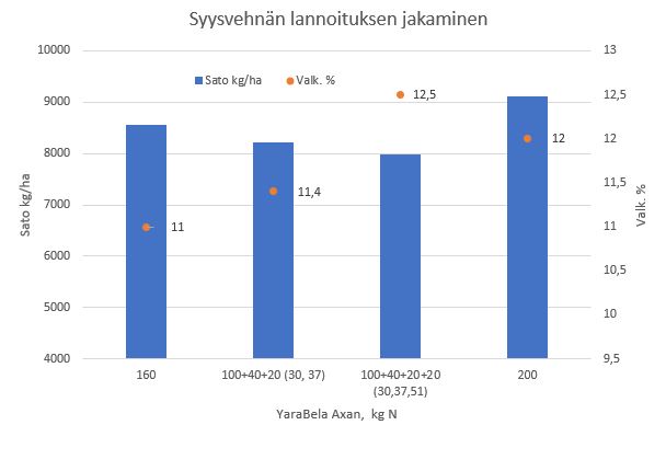 Korkea satotaso johtaa useimmiten syysvehnän matalaan valkuaistasoon, ellei lannoitusta suunnitella etukäteen joustavaksi kasvukauden olosuhteisiin.